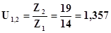 де: Х – відстань від точки А до точки зачеплення U1,2 – передаточне відношення Визначаємо передаточне відношення: