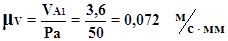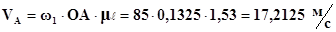 На кресленні № 1 довільно вибираємо полюс P і перпендикулярно ланці О1А1 довжиною 50 мм провидимо відрізок, який і є графічним аналогом швидкості. Визначаємо масштабний коефіцієнт: