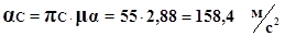 З точки В відкладаємо відрізок ВС’ паралельно до ланки ВС. З кінця якого проводимо перпендикуляр до перетину з горизонталлю. Точка їх перетину і буде точкою С, з’єднавши її з полюсом ми отримаємо графічний аналог прискорення точки С. Знайдемо дійсне прискорення точки С:
