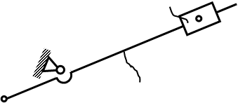 мал. 2). 1.2 Структурний аналіз механізму.Виконуємо аналіз кінематичного ланцюгу (мал. 2):1-6 – обертальна кінематична пара 5-го класу; 1-2 - обертальна кінематична пара 5-го класу; 3-6 - обертальна кінематична пара 5-го класу; 3-4 - обертальна кінематична пара 5-го класу; 4-5 - обертальна кінематична пара 5-го класу; 2-3 - поступальна кінематична пара 5-го класу; 5-4 - поступальна кінематична пара 5-го клас. Проаналізуємо кінематичні ланки (мал. 2): 1 – кривошип; 2 – куліса; 3 – коромисло; 4 – шатун; 5 – повзун; 6 – стояк. Визначаємо рухомість механізму (мал.1) за формулою Чебишева: