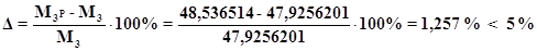 Розрахуємо похибку між моментом отриманим з силового розрахунку і моментом отриманим з важеля