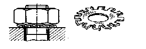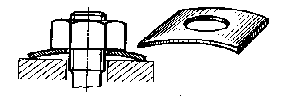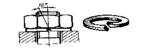 4.2 Упругие шайбы. Стопорение упругими шайбами основано на создании постоянных сил трения в резьбе и на торце гайки. Таким образом, в данном случае сочетается принцип стопорения гайки «на болт» и «на корпус». Силы трения препятствуют отвертыванию гайки при вибрациях, пульсации сил, действующих на соединение, а также при появлении остаточных деформаций в системе (например, при смятии опорных поверхностей). Чем больше упругость шайбы, тем надежнее стопорение. За исключением особых случаев, упругие шайбы устанавливают так, чтобы при окончательной затяжке обеспечивался жесткий упор гайки в опорную поверхность стягиваемой детали.
