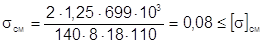 Допустима напруга при розрахунку на витривалість шестірні й колеса: