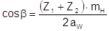 найближче значення міжосьової відстані зі стандартного ряду Визначаємо нормальний модуль зачеплення: