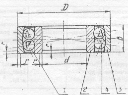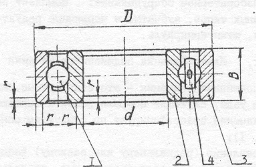 Конструктивно любой из подшипников качения, как узел, состоит из следующих деталей: тел качения 1 (шариков или роликов), внутреннего 2 (надеваемого на вал) и внешнего 3 (вставляемого в корпус, например, редуктора), колец и сепаратора 4, разделяющего и направляющего тела качения при их движении. Соотношение габаритных размеров подшипников определяет их серию: сверхлегкую, особо легкую, легкую, легкую широкую, среднюю, среднюю широкую и тяжелую. Выпускаются преимущественно подшипники легкой и средней серий. Точность подшипников качения определяется точностью их основных размеров и точностью вращения. В СССР производят подшипники качения следующих классов точности (ГОСТ 520-71) в порядке её повышения: 0, 6, 5, 4, 2. Для большинства валов и осей общего назначения применяют подшипники класса точности 0 (нормального). Основными материалами для колец и тел качения подшипников являются шарикоподшипниковые высокоуглеродистые хромистые стали ШХ15 и ШХ15СГ, широко применяются также цементуемые легированные стали 18XГ'T и 20Х2Н4А. Твердость колец и роликов обычно 60...65 НRС, шариков 62...65 HRC. Сепараторы массовых подшипников изготавливают из мягкой углеродистой стали методом штамповки.