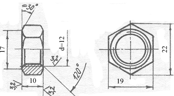 Рис. 2. Рис. 3. Рабочий чертёж гайки М12 ГОСТ5945-72