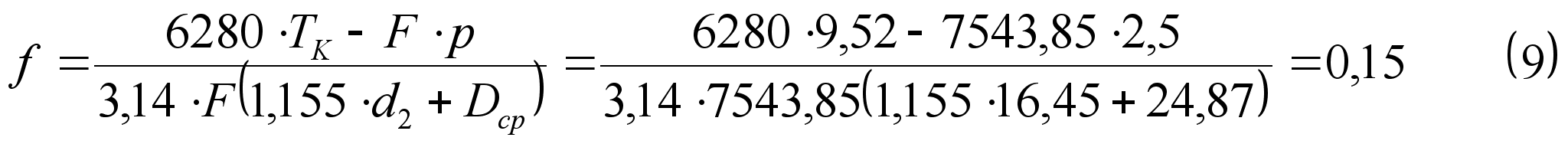 В данной работе для увеличения долговечности резьбы принимают больший коэффициент запаса прочности, равный 5.