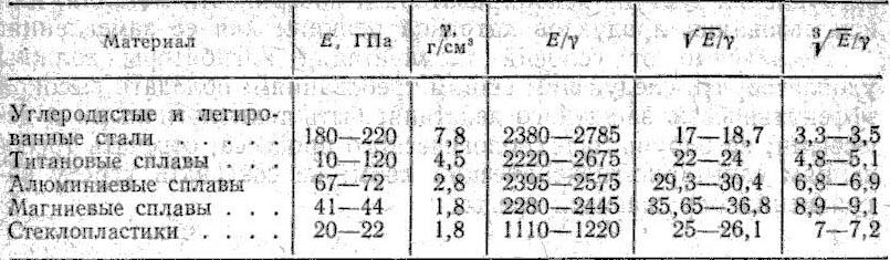 Литература ВВЕДЕНИЕ Конструкторы при выборе материала для какой-либо конструкции или изделия не могут учитывать только один или два каких-либо критерия, характеризующие свойства материала, им необходимо знать его конструктивную прочность. Конструктивная прочность - это определенный комплекс механических свойств, обеспечивающий длительную и надежную работу материала в условиях его эксплуатации. Конструктивная прочность - это прочность материала конструкции с учетом конструкционных, металлургических, технологических и эксплуатационных факторов, т. е. это комплексное понятие. Считается, что как минимум нужно учитывать четыре критерия: жесткость конструкции, прочность материала, надежность и долговечность материала в условиях работы данной конструкции. Жесткость конструкции. Для многих силовых элементов конструкций - шпангоутов, стрингеров, плоских пластинок, цилиндрических оболочек и т, п. - условием, определяющим их работоспособность, является местная или общая жесткость (устойчивость), определяемая их конструктивной формой, схемой напряженного состояния и т. д., а также и свойствами материала. Показателем жесткости материала является модуль продольной упругости Е (модуль жесткости) - структурно нечувствительная характеристика, зависящая только от природы материала. Среди главных конструкционных материалов наиболее высокое значение модуля Е имеет сталь, наиболее низкое - магниевые сплавы и стеклопластики. Однако оценка этих материалов существенно изменяется при учете их плотности и использовании критериев удельной жесткости и устойчивости: Е/,(E/)1/2,(E/)1/3 (табл.1).