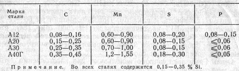 м Рис. 4. Влияние степени деформации на твердость стали Г13(1) и углеродистой стали 40 (2) Сталь Гадфильда широко используют для изготовления деталей, испытывающих в процессе эксплуатации ударные нагрузки и износ одновременно. Вследствие большой вязкости аустенита эта сталь плохо обрабатывается режущим инструментом, изделия из нее изготавливаются главным образом литьем. Из стали Г13 делают крестовины железнодорожных и трамвайных путей, зубья ковшей землечерпательных машин, траки гусеничных машин, щеки дробилок и др. 8. Строительные стали Так как детали строительных конструкций соединяют сваркой, то основным требованием к строительным сталям является хорошая свариваемость. Поэтому строительные стали содержат до 0,25 % С. При более высоком содержании углерода в зонах, нагретых при сварке до температур выше критических, возможно образование структуры мартенсита. В этом случае наблюдается объемный эффект, что способствует образованию холодных трещин в зонах около сварных швов. Кроме того, углерод, расширяя интервал кристаллизации металла шва, способствует образованию горячих трещин в металле шва. В качестве строительных сталей используют главным образом углеродистые стали обыкновенного качества марок Ст3, Ст4, имеющие т=200270 МПа. Прочность строительных сталей повышается в результате легирования. Поскольку строительную сталь используют в больших количествах, то целесообразно вводить в ее состав дешевые легирующие элементы. Такими элементами являются марганец и кремний. Низколегированная строительная сталь содержит до 1,75 % Мn и до 0,7 % Si. Предел текучести увеличивается до 360380 МПа. Низколегированные строительные стали, кроме улучшения механических свойств, имеют еще одно преимущество–пониженную критическую температуру перехода в хрупкое состояние. Эти стали могут работать до –40 С, а стали 10ХСНЛ и 15ХСНД, легированные дополнительно никелем и медью, и до –60 С. 9. Автоматные стали Для неответственных деталей, производимых в большом количестве на станках-автоматах (болты, гайки, винты, втулки и т.д.), используют так называемые автоматные стали (ГОСТ 1414–75). В таких сталях допускается повышенное содержание серы и фосфора, поэтому они обладают меньшей вязкостью, благодаря чему стружка образуется короткая и ломкая, а поверхность обработанных сталей получается чистой и ровной. При изготовлении деталей из автоматных сталей можно допускать большие скорости резания. Добавки свинца (0,25 %) улучшают обрабатываемость резанием (АС11, АС40). Автоматные стали подвергают диффузионному отжигу, при температуре 1100–1150 С для устранения ликвации серы, тем самым исключается возможность красноломкости. Для повышения прочности автоматные стали иногда нагартовывают холодной протяжкой. В последнее время автоматные стали, кроме свинца, легируют и другими элементами: марганцем, хромом, никелем (А40Г, АС20ХГНМ и др.).