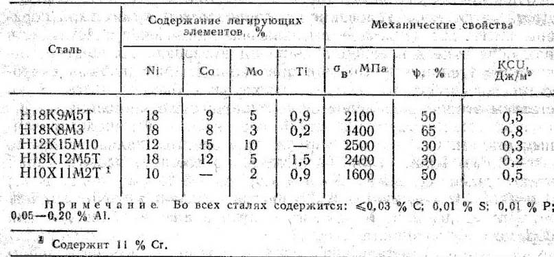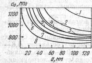 М Рис. 3.Диаграмма для выбора марок конструкционной стали в зависимости от заданной прочности и размера сечения детали: 1 - 30ХН3М; 2 - 30ХН3; 3 - 34ХМА; 4 - 33ХСА; 5 - 30Н3; 6 - 35ХА; 7 - 35СГ; 8 - сталь 30 4. Высокопрочные стали С каждым годом растет потребность в материалах, обладающих высокой прочностью и вместе с этим необходимыми пластичностью и вязкостью. В обычных конструкционных сталях предел прочности в как правило, получают не более 1100–1200 МПа, так как при большей прочности сталь практически становится хрупкой. Стали, в которых подбором химического состава и оптимальной термической обработки получают в=18002000 МПа, называют высокопрочными. Высокопрочное состояние может быть получено несколькими способами. Один из таких способов–легирование среднеуглеродистых сталей (0,4–0,5 % С) хромом, вольфрамом, молибденом, кремнием и ванадием. Эти элементы затрудняют разупрочняющие процессы при нагреве до 200–300 С. При этом получают мелкое зерно, что в свою очередь понижает порог хладноломкости, увеличивает сопротивление хрупкому разрушению. Например, сталь, содержащая 0,4 % С; 5 % Сг; 1 % Мо и 0,5 % V, после закалки в масле и низкотемпературного отпуска при 200 С имеет в=2000 МПа при =10 %, =40 % и КСU=0,3 МДж/м2. Стали 30ХГСНА, 40ХГСНЗВА, 30Х2ГСНЗВМ и т.п. после термической обработки на структуру нижнего бейнита (закалка и низкий отпуск или изотермическая закалка) приобретают высокую прочность–такая обработка сообщает сталям меньшую чувствительность к надрезам. Прочность в=16001850 МПа при 1512 % и КСU=0,40,2 МДж/м2. Высокая прочность легированных конструкционных сталей может быть получена и за счет применения термомеханической обработки (ТМО). Так, сталь 30ХГСА, 40ХН, 40ХНМА, 38ХНЗМА после НТМО имеют временное сопротивление разрыву до 2800 МПа, относительное удлинение и ударная вязкость увеличиваются в 1,5–2 раза по сравнению с обычной термической обработкой. Объясняется это тем, что частичное выделение углерода из аустенита при деформации облегчает подвижность дислокаций внутри кристаллов мартенсита, что и способствует повышению пластичности (охрупчивание при закалке сталей объясняется именно малой подвижностью дислокаций в мартенсите при значительном содержании в нем углерода). Мартенситностареющие (Марэйджинг) стали. Эти стали сочетают высокие прочностные свойства с хорошей пластичностью и вязкостью. Достигается это легированием специальной термической обработкой. Их достоинства–высокая технологическая пластичность при обработке давлением в широком интервале температур; отсутствие трещинообразования при охлаждении с любыми скоростями после обработки давлением; хорошая свариваемость. Недостатком этих сталей является их склонность к ликвации. Мартенситностареющие стали относятся к высоколегированным сталям. Основным легирующим элементом является никель (10–26 %). Кроме того, различаясь по составу, разные марки этих сталей содержат 7–9 % Со; 4,5–5 % Мо; 5–11 % Сг; 0,1–0,35 Аl; 0,15–1,6 % Тi; иногда ~0,3–0,5% Nb; 0,2 % Si, Mn; ~0,01 % S, Р каждого. Титан и алюминий вводят для образования интерметаллидов. В мартенситностареющих сталях стремятся получить минимальное количество углерода (0,03 %), так как углерод, образуя с легирующими элементами карбиды, способствует охрупчиванию сталей; Кроме того, при этом понижается содержание легирующих элементов в твердом растворе. Термическая обработка таких сталей закл