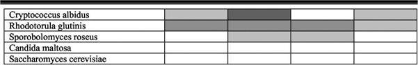 Условные обозначения:0 — литическая активность не выявлена у всех штаммов бактерий Максимальное количество штаммов, обладающих дрожжелитическими свойствами, было обнаружено среди бактерий родов Streptomyces, Promicromonospora, Oerskovia, Agromyces. Впервые дрожже-литическая активность выявлена у акти-нобактерий родов Mycobacterium и Micrococcus. Таким образом, способность лизи-ровать клетки дрожжей характерна для бактерий гидролитического комплекса, принимающих активное участие в деструкции растительного опада − Streptomyces, Promicromonospora-Oers-kovia, Bacillus, Mycobacterium, Cytophaga, Myxococcus. Среди обладающих дрож-желитической активностью бактерий больше представителей с грамположи-тельным типом строения клеточной стенки, чем c грамотрицательным. Чувствительность дрожжей к лити-ческому действию бактерий проявилась как на уровне классов, так и родов. Бактерии лизировали 37% дрожжевых культур, относящихся к базидиомицетам, и 28% штаммов дрожжей - аскомицетов. Литическое действие бактерий р. Promicromonospora особенно сильно проявлялось в отношении Ph. rhodozyma (типичное местообитание - сокотечения деревьев) - 100% взаимодействий от теоретически возможных; Cr.albidus и Rh. glutinis (типичное местообитание - фил-лосфера растений и подстилки) - 90 и 69% соответственно. Бактерии р. Oerskovia были наиболее активны по отношению к клеткам Rh. glutinis - 65%. Представители р.р. Promicromonospora -Oerskovia проявляли высокую дрожжели-тическую активность и по отношению к почвенным дрожжам L. кononenkoae - 58 и 61% (табл. 3). Таблица 3 Чувствительность дрожжей разных видов к литическим ферментам бактерий
