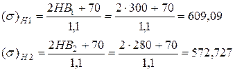 3.6.1.3. Расчетные допускаемые контактные напряжения: для прямозубых – (s)Н определяется минимальным значением, определяемым в п. 3.6.1.2.