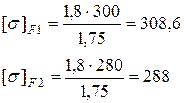 3.6.1.4. Допускаемые напряжения при расчете зубьев на изгиб с достаточной степенью точности для длительного срока эксплуатации при нереверсивной нагрузке для шестерни [s]F1 и колеса [s]F2