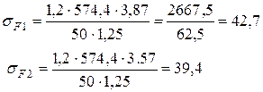 3.8. Зубчатая передача 3.8.1. Для зубчатой передачи определяются действующие напряжения изгиба у ножки зуба шестерни sF1 и колеса sF2 и сравниваются с допускаемыми.