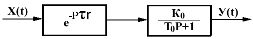 Таким образом, мой ОУ может быть представлен как аналогичное соединение с такой разницей, что запаздывающее звено будет иметь как чистое транспортное запаздывание, так и емкостное за счет инерционности апериодического звена. Соединение имеет вид: Рисунок 2.1