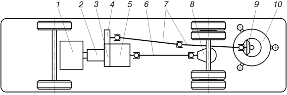 Рис. 3. Схема городского электробуса новой концепции: 1– источник тока; 2 – электродвигатель; 3 – механизм реверса; 4 – коробка отбора мощности; 5 – планетарный дисковый вариатор; 6, 7 – карданные передачи; 8 – главная передача; 9 – коническая зубчатая передача; 10 – супермаховичный накопитель Здесь блок супермаховичного накопителя 10, снабженный своим редуктором 9, расположен независимо от остальных агрегатов и мягко подвешен на раме для уменьшения и без того небольших гироскопических усилий при горизонтальном расположении супермаховика. С помощью коробки отбора мощности 4 и карданных передач 7 этот блок может связываться с вариатором 5 как независимо, так и совместно с электродвигателем 2. Этот электродвигатель может быть соединен с вариатором 5 и независимо от супермаховика, и играть роль полноценного тягового двигателя, в основном, на стационарных режимах движения. Несмотря на то, что электродвигатель 2 в этом случае несколько увеличивается по мощности и массе, энергоемкость супермаховичного накопителя может быть существенно снижена, реально до 0,5кВт·ч. Это позволяет изготовлять супермаховик из такого стабильного и сравнительно дешевого материала, как стальная углеродистая проволока. Выход из строя (разрыв) супермаховика настолько безопасен, что тяжелого защитного кожуха, существенно превышающего по массе сам маховик, и необходимого при маховике из углепластиков, не требуется. Вариатор позволяет тяговому электродвигателю работать в эффективном диапазоне крутящих моментов и частот вращения, передавая только часть мощности, необходимой для движения электробуса, что благоприятно для его работы. Следует заметить, что проблема создания эффективного электромобиля, уже давно актуальная в технически развитых странах мира, приобретает особую актуальность в настоящее время в России, благодаря новым программам разработки электромобилей, в которых участвуют и авторы данной статьи. Список литературы ГулиаН.В. Накопители энергии. – М.: Наука, 1980. – 150с. Electric & hybrid vehicle technology' 95. The international review of electric and hybrid vehicle design and development. UK & International press. – 1995. – 304с. Der neue elektro – 3er von BMW – glied einer langen entwicklungskette. Kolloquium fahrzeug- und motorentechnik. 15...17 Oktober 1991. Eurogress Aachen. – 47 p. ОтроховВ.П., ГулиаН.В., ПетраковаЕ.А., ЮрковС.А. Бесступенчатая коробка передач для ЗиЛ-5301 // Автомобильная промышленность. – 1998. – №7. |