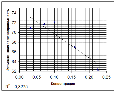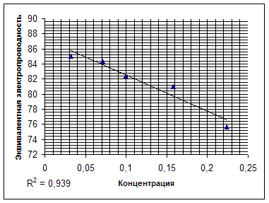 График зависимости эквивалентной электропроводности от концентрации в