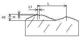 Критерий: Lнб/Ннб >1000 макронеровность, L1/Н1 = 50...100 -волнистость, Lнм/Ннм Шероховатость поверхности (ГОСТ 2789-73). Параметры шероховатости поверхности: Ra - среднее арифметическое отклонение профиля (100-0.008 мкм), Rz - высота неровностей профиля по десяти точкам (1600-0.025 мкм), Rmax - наибольшая высота неровностей профиля (1600-0.025 мкм), Sm - средний шаг неровностей (12.5-0.002 мкм), S - средний шаг неровностей по вершинам (12.5-0.002 мм), tp - относительная опорная длина профиля, p- значение уровня сечения профиля. Предельные значения параметров указаны выше в скобках. При необходимости устанавливают направление неровностей поверхности. Ra - среднее арифметическое абсолютных значений отклонений в пределах базовой длины