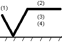 (1)- параметр шероховатости поверхности по ГОСТ 2789-73; (2)- вид обработки поверхности и др. указания; (3)- базовая длина по ГОСТ 2789-73; (4)- условные обозначения направления неровностей. Применяемые знаки:
