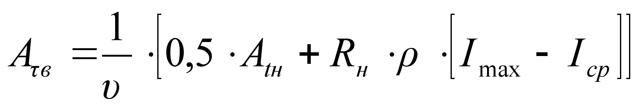 R0 – сопротивление теплопередачи покрытия, м2*К/Вт; tн – среднемесячная температура наружного воздуха за июль, С; Rн – термическое сопротивление при теплообмене между наружным воздухом и внешней поверхностью покрытия, м2*к/Вт; - коэффициент поглощения солнечной радиации материалом наружной поверхности покрытия; Iср – среднесуточная (прямая и рассеянная) суммарная солнечная радиация, попадающая на горизонтальную поверхность, Вт/м2; tв – температура воздуха, удаляемого из помещения, С; – коэффициент для определения гармонически изменяющихся величин теплового потока принимаем в зависимости от максимального часа теплопоступлений; К – коэффициент, зависящий от конструкции покрытия; Ав – амплитуда колебаний температуры внутренней поверхности ограждающих конструкций, С Rв – термическое сопротивление при теплообмене между внутренней поверхностью покрытия и воздухом помещения, м2*К/Вт; F – площадь покрытия, м2. Из задания R0=0,96 м2*К/Вт По табл. 1.5 [5] tн=18,1 С Rн определяется по формуле:
