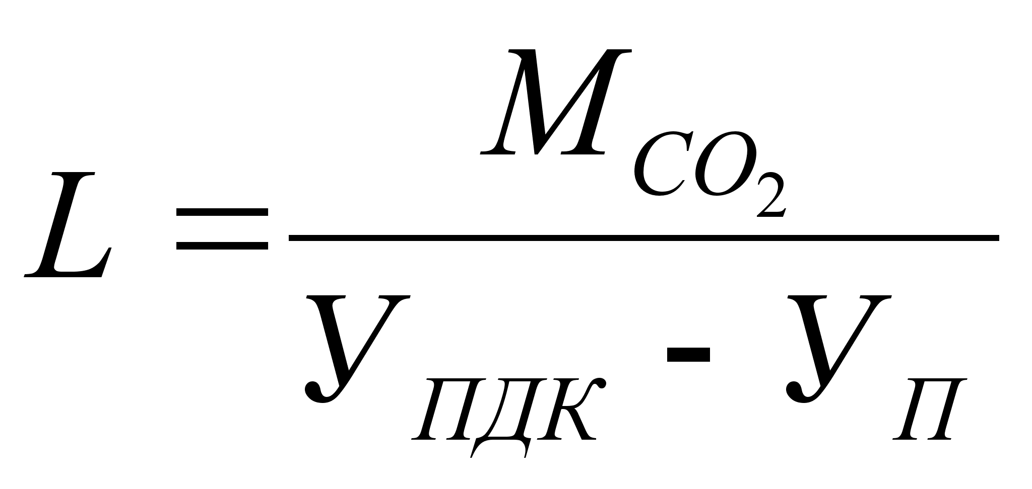 где lЛ – воздухообмен на одного человека, м3/ч*чел; nЛ – количество людей в помещении. По прил.17 [1] определяем, что для аудитории, где люди находятся более 3 часов непрерывно, lЛ = 60 м3/ч*чел. L = 200*60=12000 м3/ч 5.3. Воздухообмен по углекислому газу.Определяется по формуле: