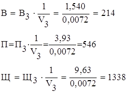 7. Расход материалов на 0,007 м3 (7 л) бетонной смеси пробного замеса рассчитывают исходя из приведенного выше номинального состава бетона (кг):