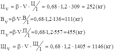 3. Расход цемента на 1 м3 бетона: 4. Расход щебня в сухом состоянии на 1 м3 бетона: