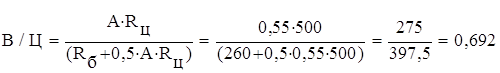 После преобразования относительно В/Ц эта формула примет вид: А=0,55 - для материалов пониженного качества