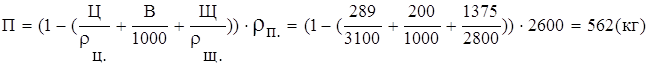 Полученное в итоге значение является расчетной плотностью бетонной смеси, т.е. 6. Коэффициент выхода бетона:
