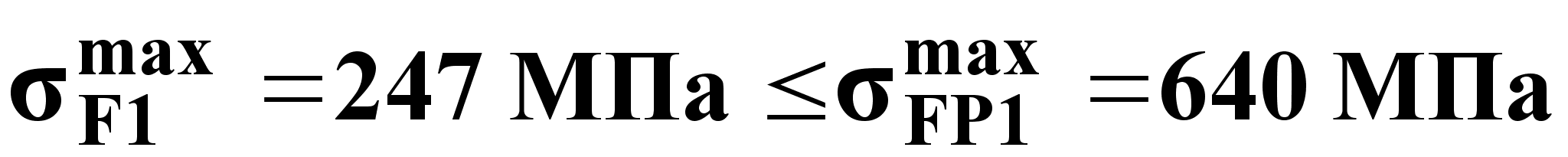 При нескінченому терміні експлуатації KFL=1. Так як передача реверсивна, то маємо KFC=0,7…0,8, приймемо KFC=0,7. Визначаємо допустимі напруження для статичної перевірки міцності при дії короткочасного перевантаження.