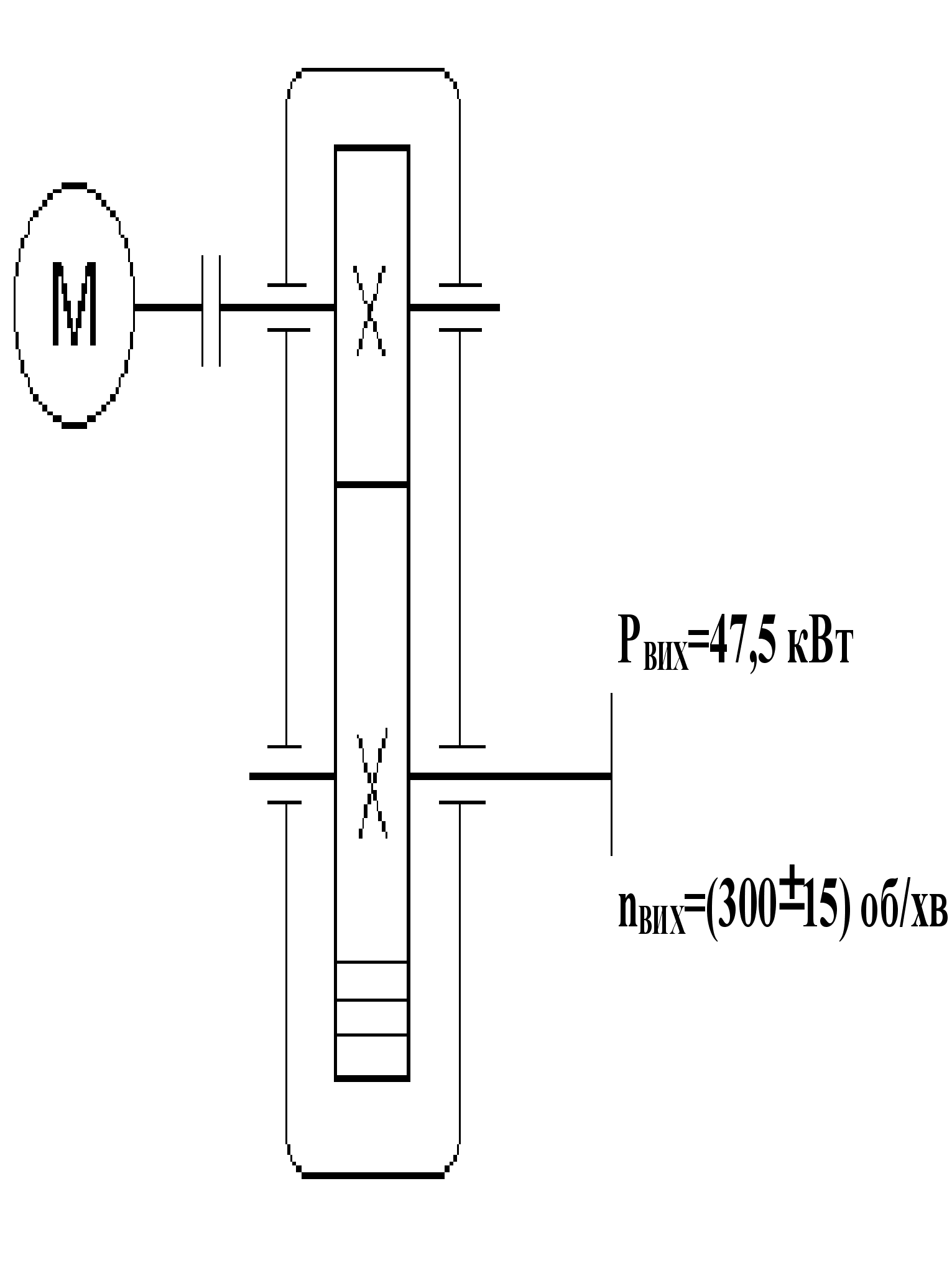 Відмінно Руководитель В.Ю. ГрицюкВыполнилстудент гр. Чернигов 1999 ТЕХНИЧЕСКАЯ ЗАДАЧАЗапроектировать прямозубую цилиндрическую передачу при таких данных: мощность на исходном вале PВИХ=47,5 квт; частота обращения тихоходного вала nВИХ=(30015) об/мин; передача реверсивная; срок эксплуатации неконченый. Кинематическая схема