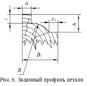 где h - высота профиля детали, т. е. расстояние между верхней и нижней точками профиля.