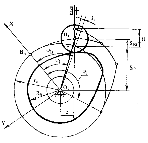 профиля кулачка профиля кулачка и углов давления и углов давления bi, yi, ri, XBi, YBi, Ji bi, y0, ri, j2i, di, yi ,