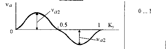 N - число равноотстоящих точек, в которых заданны значения переменной. Примечание: В течение цикла движения толкатель кулачкового механизма должен переместиться из начального положения на величину хода h , а затем возвратиться в исходное положение, то есть перемещение толкателя на фазе удаления равно перемещению на фазе сближения. Следовательно, график кинематической передаточной функции скорости должен удовлетворять условию:
