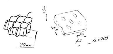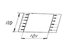 Sв = 0,645·69,25/1,805358 = 24,741 (кг/см). sн = 20,5/0,12 = 170,8 (кг/см2), Избыток прочности: h = 2750/170,8 - 1 = 15,1 . sв = 24,74/0,15 = 165 (кг/см2) . Избыток прочности: h = 2750/165 - 1 = 15,7 . Давление передаваемое на заполнитель: Рзап = Р/(1 + d + x) = 0,357 (кг/см2). Проверяем систему ячейки заполнителя на усточивость. Схема нагружения приведена на рис. 27. Схема нагружения грани ячейки заполнителя и ее параметры Рис. 27 Р = 0,357 кг/см. а/b = 20/10 = 2,0 , K = 3,6/