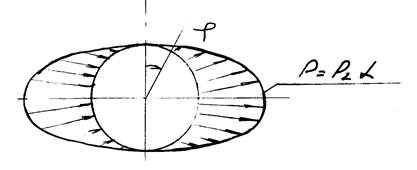 Рис. 24 Величина a/b = 101/120 = 0,841; К = 3,6. sкр = 2750 кг/см2, h = 2750/355 – 1 = 6,746 , h >> 1 2.7.3. Проверка прочности внутреннего канала на осевое сжатие Проверку прочности внутреннего канала на осевое сжатие проведем по методике изложенной в [6]: Тдейств. = [P·l·(d + d1)(dв + dн)p(d + d1)]/2J = [3948·38,22(138,5 + 142,5)2(0,12 + + 0,15)·3,14]/(638037,94·4) = 3958 (кг) Действующая сжимающая нагрузка от qp равна 2000·1,5 = 3000 (кг/м2). Т = (p/4)(1922 – 1382)·0,3 = 4198,74 (кг). Суммарная нагрузка: åТ = 8157 кг. Заполнитель маложесткий. Расчетные формулы для трехслойных панелей (6): sзап < 1,21qEпр , Li = E1H/E1B = 1, a = ÖC + 1/[2,6(1 + 50)],