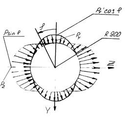 2.5. Определение равнодействующих нагрузок по сечениям воздухозаборника от внешних и внутренних аэродинамических нагрузок Суммарное распределение нагрузки в поперечном сечении воздухозаборника Рис. 16 Расчет нагрузок от внешних аэродинамических сил (для нижних значений pz производится по формулам:
