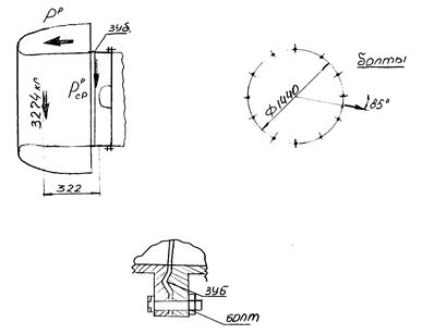 Рис. 18 Задаемся коэффициентом перегрузки n = 1,5, тогда Ринрц = Gв-ка·n = 93·1,5 = 140 (кг) . М = 0,35·140 = 49 (кг·м) . Рб = (4·43)/(12·1,44) = 11,34 (кг) . Суммарный Мизг = Максимальная растягивающая нагрузка на болт Рболт = 245,2 кг. Схема расположения крепежных болтов по контуру и суммарные действующие нагрузки приведены на рис. 19 Схема расположения крепежных болтов по контуру и суммарные действующие нагрузки Рис. 19 2.6.2. Определение нагрузок на болты крепления в случае Д' Расчетные нагрузки на воздухозаборник по сечениям и по длине, точки приложения равнодействующих, рассчитанные значения моментов и перерезывающих сил приведены на рис. 20. Максимальное растягивающее усилие на болт: Рmaxр = 4М/4d = (4·0,392·2400)/(12·1,440) = 218 кг. Срезающая нагрузка воспринимается буртиком проставки – Рсрр = 2400 кг. 2.7. Проверка прочности воздухозаборника самолета 2.7.1. Исходные данные для расчета Внутренняя обшивка: D = 1,8 мм, материал: сплав Д19, перфорация – диаметром 2 мм. Расчетные нагрузки на воздухозаборник в случае Д' Рис. 20 Заполнитель: ТССП-Ф-10П (ТУ-596-258-87), удельный весь заполнителя – g = 35±5 кг/м3; sсж = 15 кг/см2. Параметры заполнителя и перфорированной обшивки приведены на рис. 21. Параметры заполнителя и перфорированной обшивки Рис. 21 Внешняя обшивка: D = 1,2 мм, материал: сплав Д19. Обечайка изготовлена из Д16Т, D = 1,8 мм, травленная с D = 1,8 мм до D = 1,2 мм. Максимальный размер клетки 101 на 120 мм. Характерные размеры и сечения представлены на рис. 22 Типовое сечение обечайки