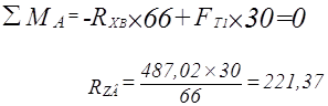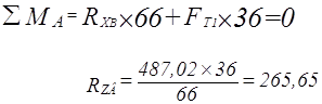 Проверка: -265,65-221,37+487,02=0 Промежуточный вал Плоскость ZOY: