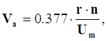 где r- радиус колёс машины, м; Um- передаточное число трансмиссии на соответствующей передаче; n- частота вращения, мин –1.