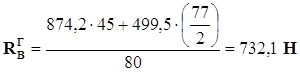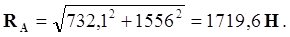 Строим эпюру изгибающих моментов от сил, действующих в горизонтальной плоскости (смотрите рисунок 4.5г). 4.7.3.5 Определение полных реакций опор а.) реакция опоры А:
