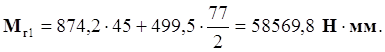 где М1,М2- суммарные изгибающие моменты соответственно в сечениях 1 и 2, Н.мм