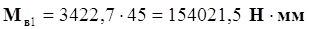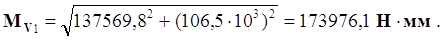 где Мv1- эквивалентный момент в сечении 1, Н.мм; Т1- крутящий момент на валу, Т1=106,5 Н.м.