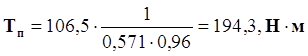 где Ft- максимальное тяговое усилие, Ft=7740,Н; r- радиус колёс, r=0,580,м; iц.;iк.- передаточные числа цилиндрической и конической передач синхронизирующего редуктора соответственно, iц.=0,424,iк.=0,571; ηц;ηк- КПД цилиндрической и конической передач соответственно, ηц=0,97,ηк=0,96.