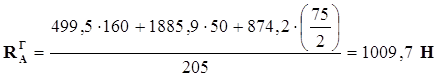 Строим эпюру изгибающих моментов от сил, действующих в горизонтальной плоскости (смотрите рисунок 4.7г). 4.7.4.5 Определение полных реакций опор а.) реакция опоры А: