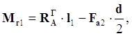 где Мг1,Мг2- изгибающие моменты в сечениях 1 и 2 соответственно, от сил действующих в горизонтальной плоскости (смотрите рисунок 4.7а)
