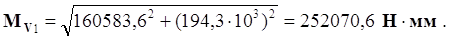 где Мv1, Мv2- эквивалентные моменты в сечениях 1 и 2 соответственно, Н.мм; Т2- крутящий момент на валу, Т2=194,3 Н.м.