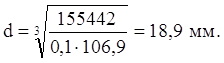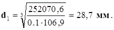 где d- диаметр вала в опасном сечении, мм; [σ-1u]- предел выносливости на изгиб зубьев,[σ-1u]=106,9 МПа.