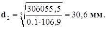 где d1,d2- диаметры вала в опасных сечениях 1 и 2, мм; [σ-1u]- предел выносливости на изгиб зубьев, [σ1u]=106,9 МПа.