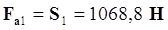 4.9.2.4 Вычисляем результирующие осевые нагрузки Принимаем схему установки подшипников ‘враспор’, получаем направление осевой составляющей правого подшипника, совпадающее с направлением внешней осевой нагрузки. Поэтому правая опора будет иметь номер 1, а левая - номер 2 (смотреть рисунок 4.11). Тогда S1=SB=1068,8 H; S2=SA=806,5 H. Поскольку S1 > S2 и Fa > 0, тогда по табл. 2.8 [13]:
